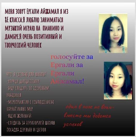 21 қазан 2021 0 1 2 3 4 5 Кандидат на пост президента Ергали Айжамал из 8 «Е» класса🙌🏻 Кандидат на пост президента Ергали Айжамал из 8 «Е» класса Осы беттің QR-коды:QR-код этой страницы: