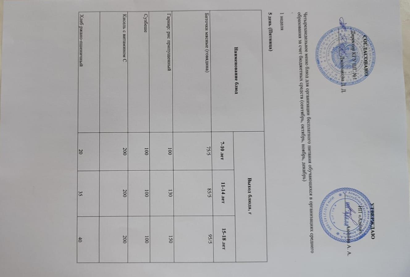 МЕНЮ 1 НЕДЕЛЯ ДЕНЬ 5