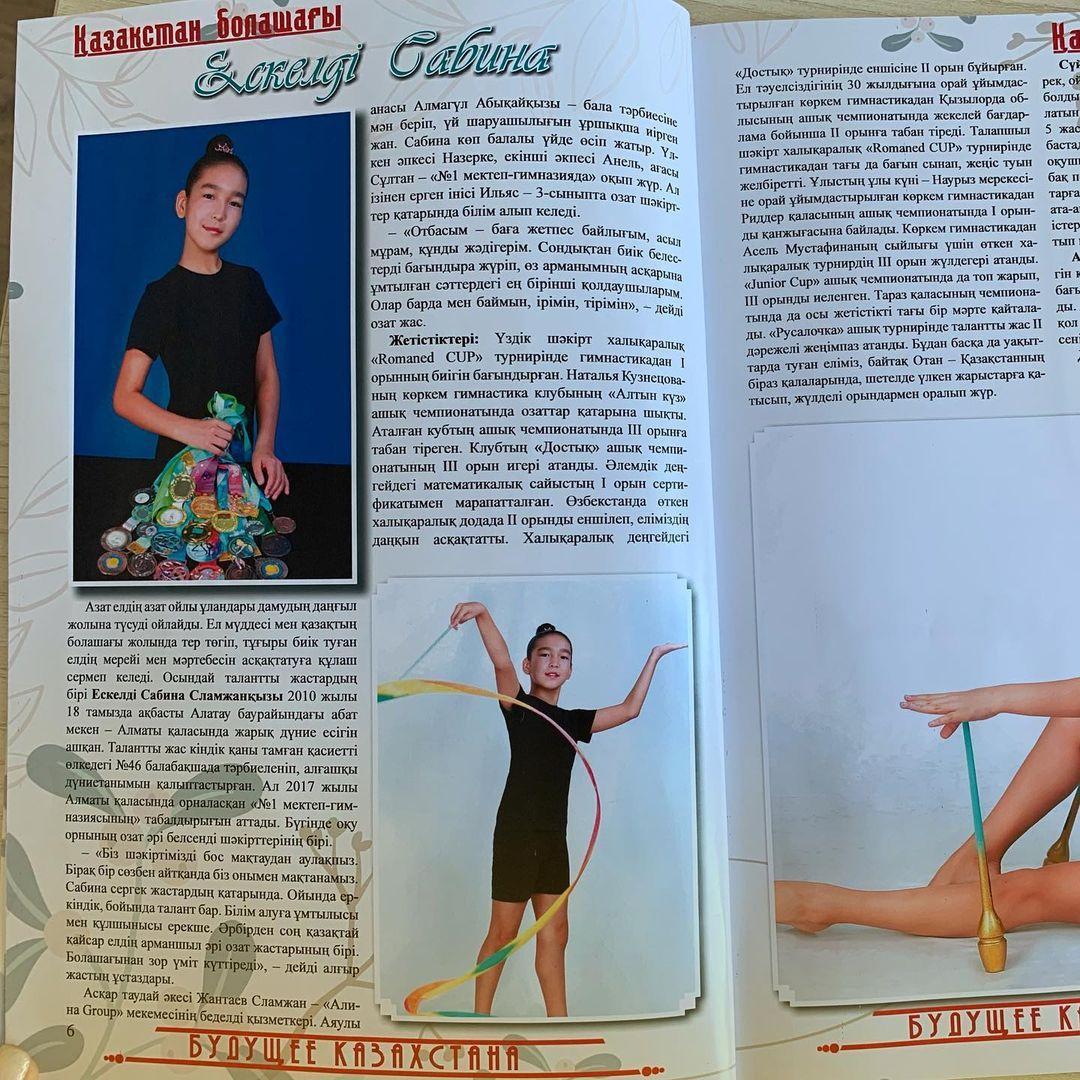 История Сабины зародилась 18 августа 2010 года в городе Алматы, скотобойне на склонах Алатау. Талантливая девушка воспитывалась в детском саду № 46 , у нее уже тогда сформировалось первое мировоззрение.В 2017 году она переступила порог «школы-гимназии №1», расположенной в Алматы. Сегодня она является одним из активистов нашей школы ! У нее есть большое количество достижений , в том числе : 1 место по спортивной гимнастике на международном турнире «Romaned CUP»;стала одной из лучших на Открытом чемпионате клуба спортивной гимнастики «Золотая осень» , клуб занял 2 место в чемпионате «Достык» , также награждена дипломом I степени математической олимпиады мирового уровня !