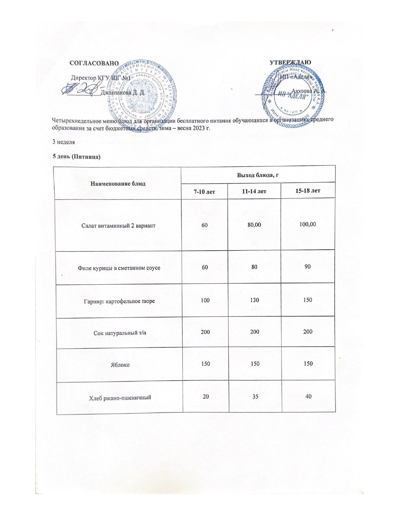 МЕНЮ 3 НЕДЕЛЯ 5 ДЕНЬ