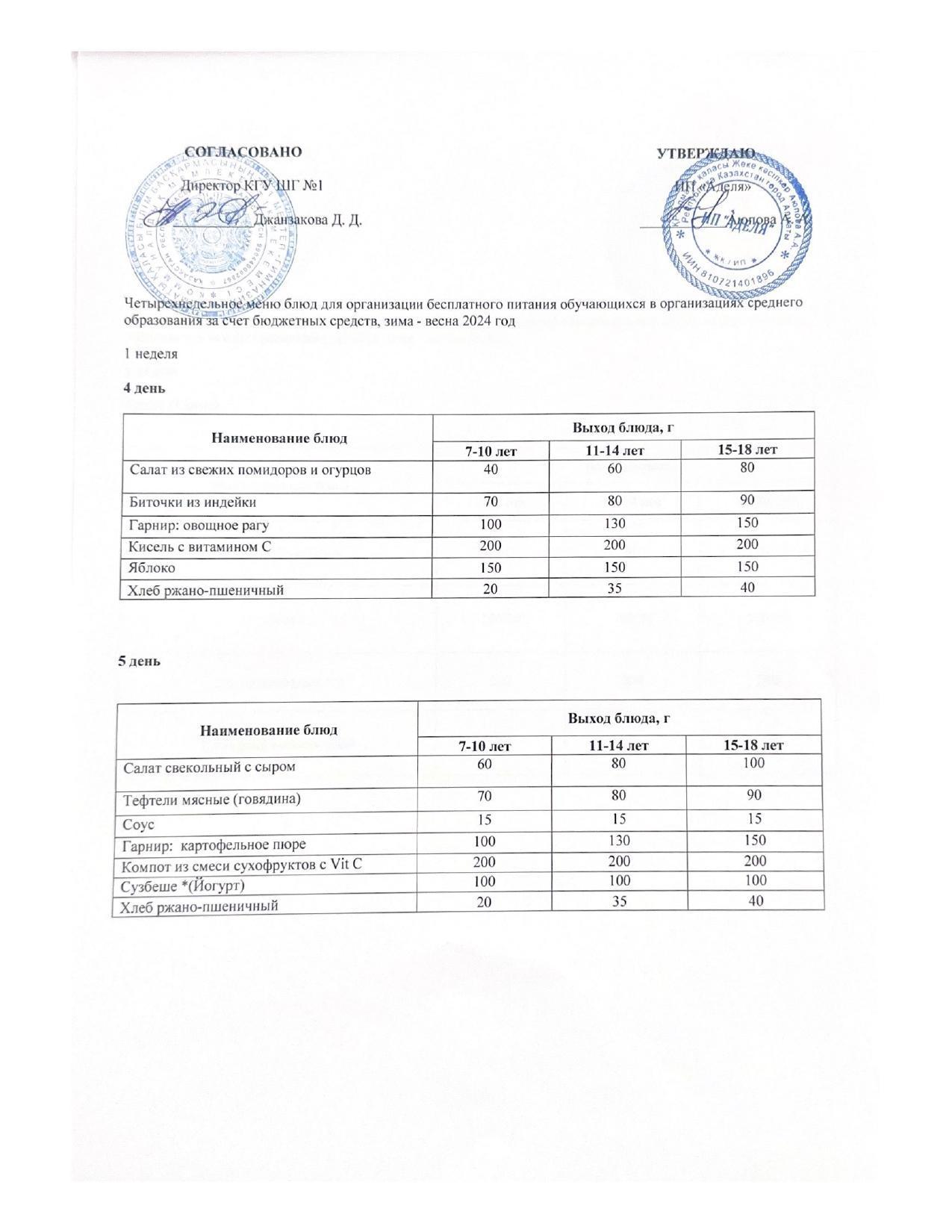 МЕНЮ ЗИМА-ВЕСНА 4 НЕДЕЛЯ