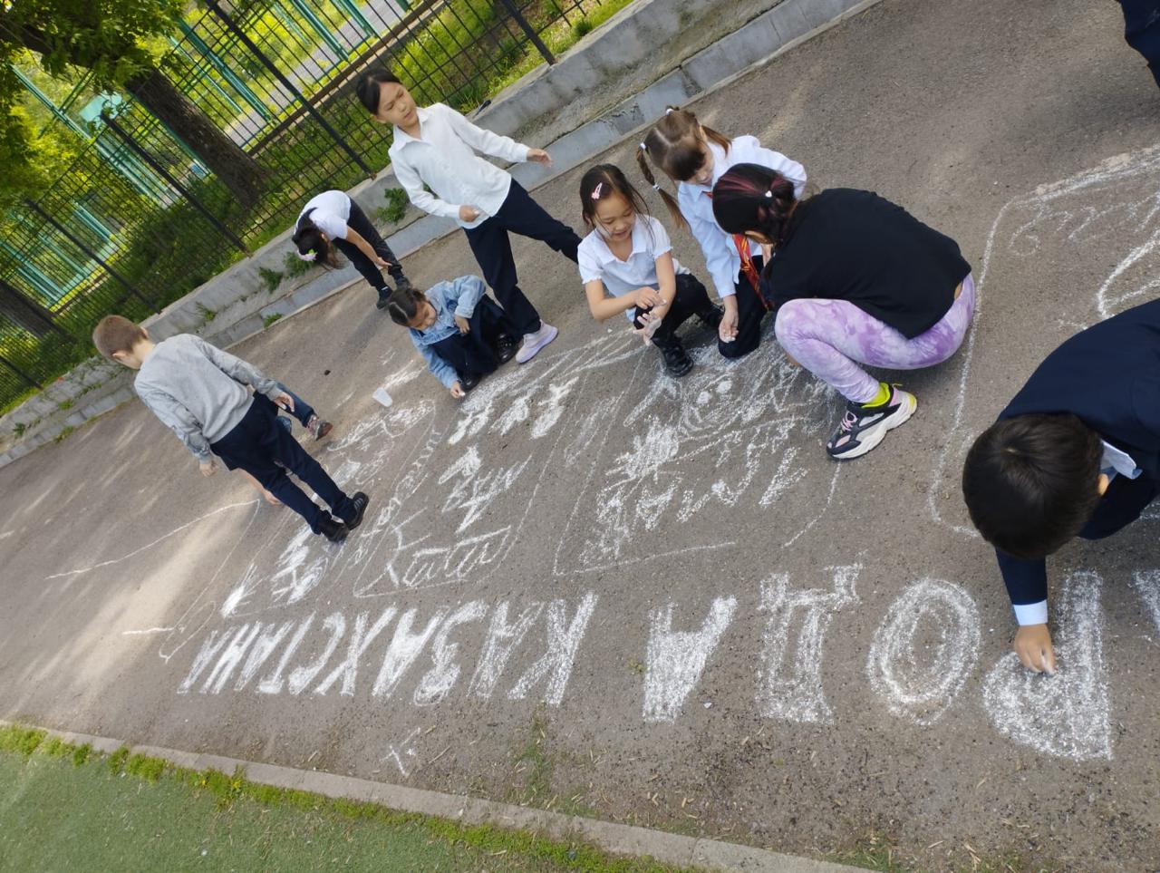 Школа гимназия №1 » Ақпарат » 1 мамыр мерекесіне орай асфальтқа сурет салу байқауы/Конкурс рисунков на асфальте в честь праздника 1 мая