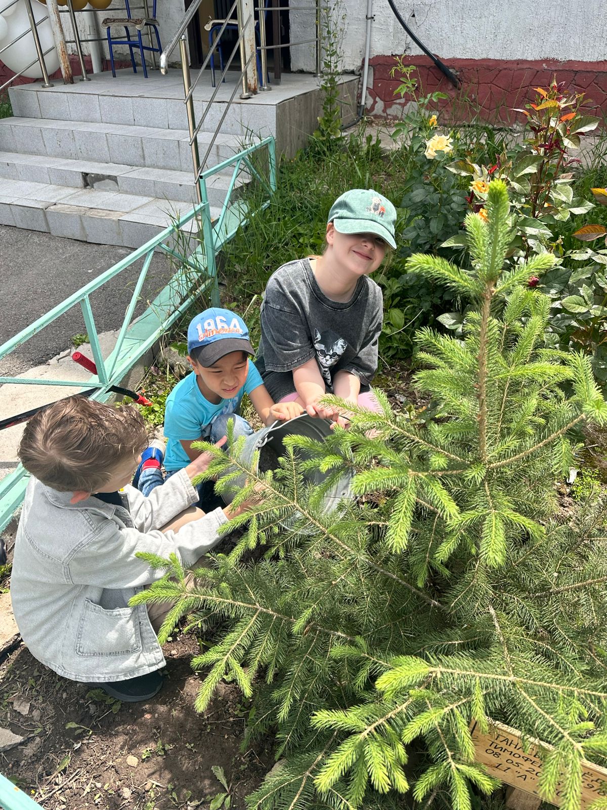 В пришкольном лагере «Балдырған» ребята не только отдыхают, но и учатся заботиться о природе 🌱 Сегодня они ухаживали за растениями, поливали и наблюдали за ростом зелёных друзей 🌼