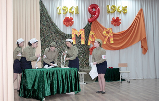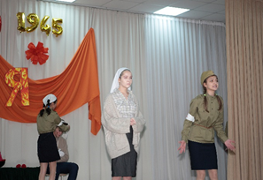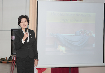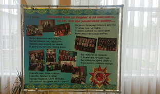Проводились классные часы по теме: «Поклонимся великим тем годам!», «Никто не забыт, ничто не забыто», «Великая война», «Девушка, ставшая легендой», «Дети войны», «Блокадный Ленинград», «Герой Советского союза Молдагулова А.Н.», «Маншук – дочь казахского народа», «Ты же выжил солдат!», «Спасибо тем, кто пал, кто воевал, кто мир нам дал!», «Слава героям!», «Труженики тыла», «Бауыржан Момышулы», «Есть такое слово «Выстоять!».