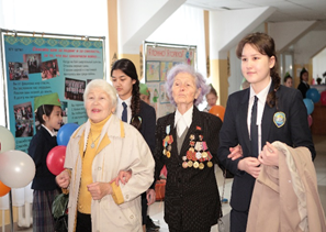 В школе действует уголок «Боевой славы», где размещается отдел «Полководчество Казахстана», ко Дню Победы старшеклассники провели экскурсию для учащихся среднего и начального звена.