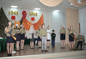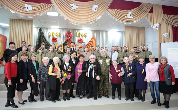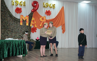 Завершением месячника был общешкольный праздник «Рано поседевшая юность», который прошел в актовом зале, организованный 9В классом, классный руководитель Мырзагалиева Г.Ш. Были приглашены ветераны ВОВ и участники трудового тыла: Ветрова Зинаида Сергеевна, Зимина-Непомилуева Надежда Павловна, Хван Г.Х., Василенко Светлана Николаевна. В завершении концерта всем ветеранам были вручены цветы и продуктовые корзины от каждого класса.