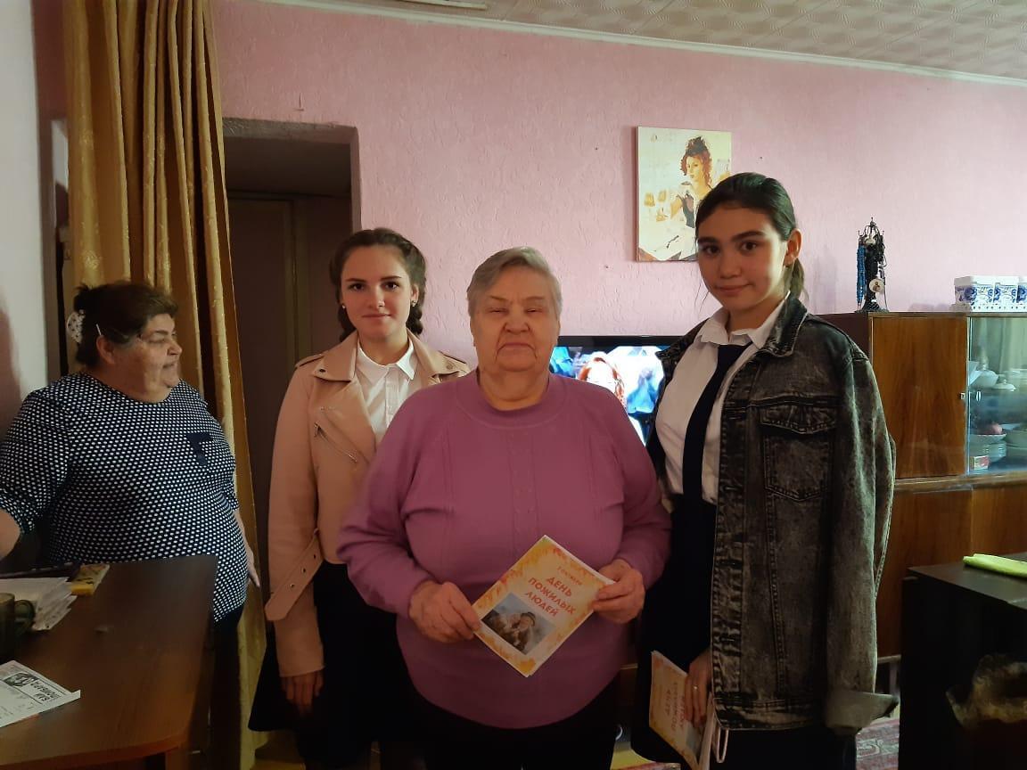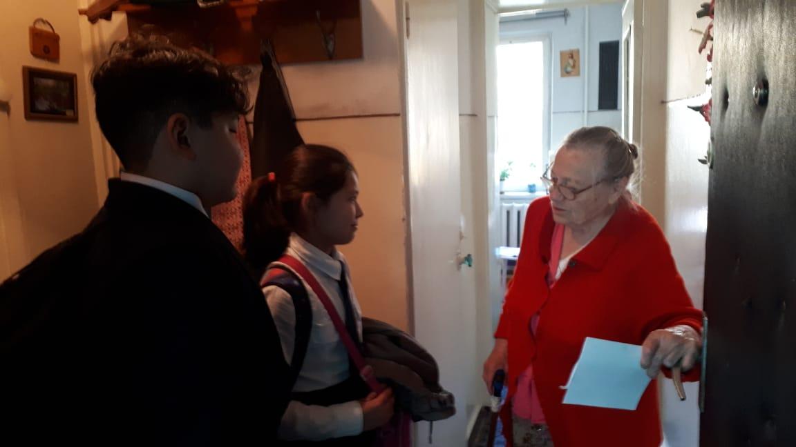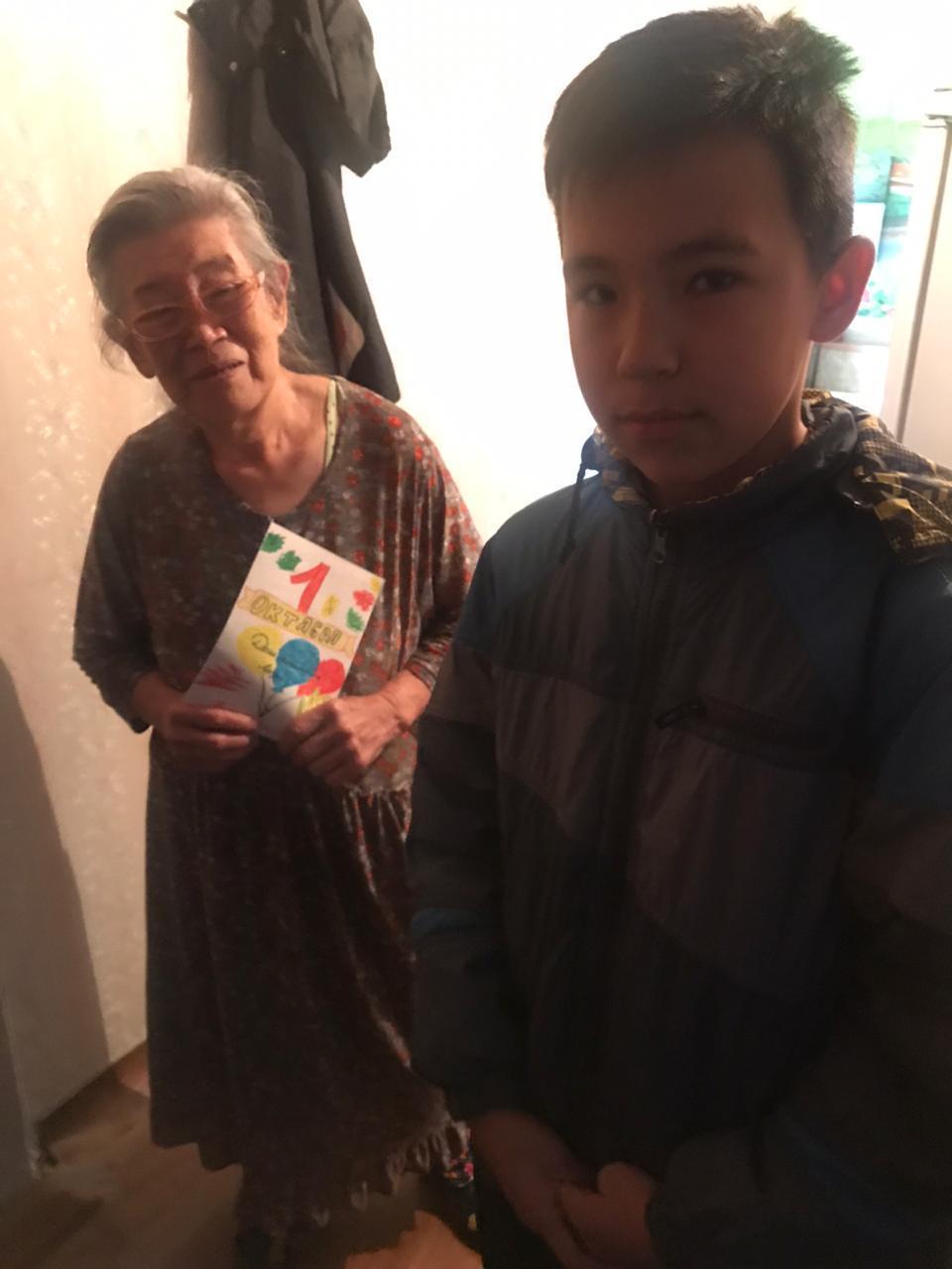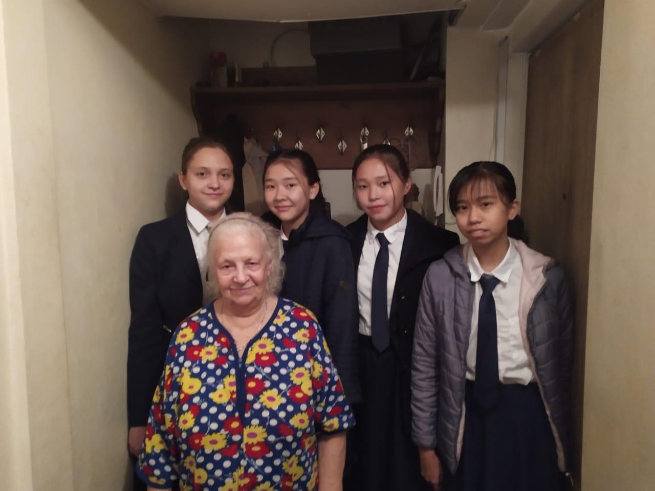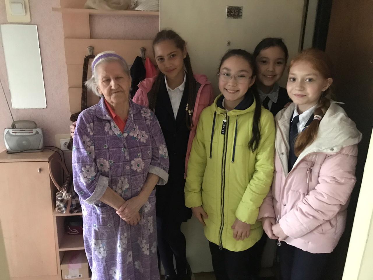 В начальных 1-2 классах, под руководством классных руководителей работала «Мы желаем счастья Вам!», где дети изготавливали открытки для бабушек и дедушек. Были посещены на дому и вручены продуктовые корзины от фонда «Ардагер» некоторым пожилым людям.