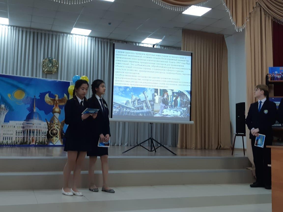 Выступление учащихся 10 «А» класса с презентацией «Социально-экономическое развитие Казахстана».