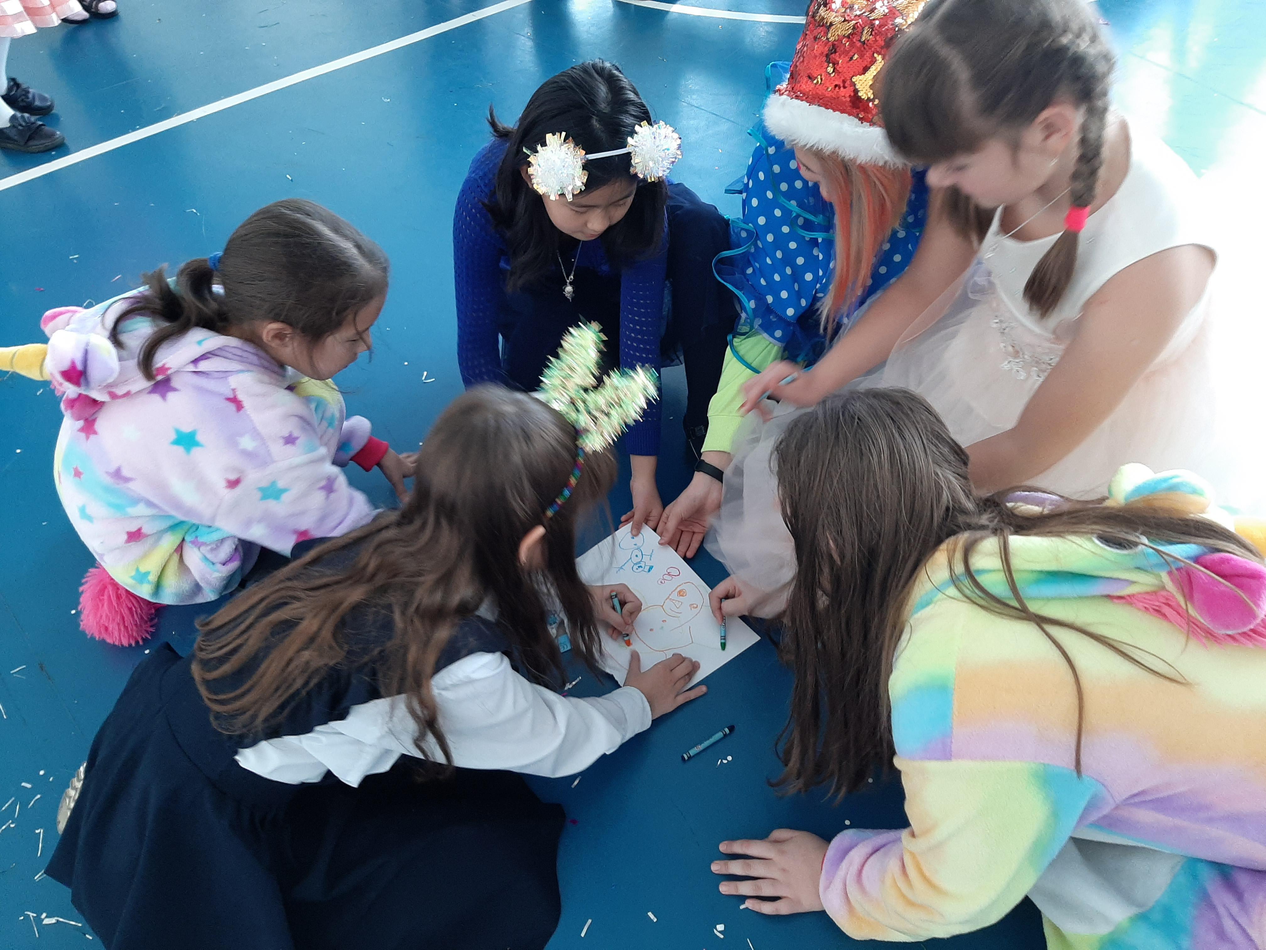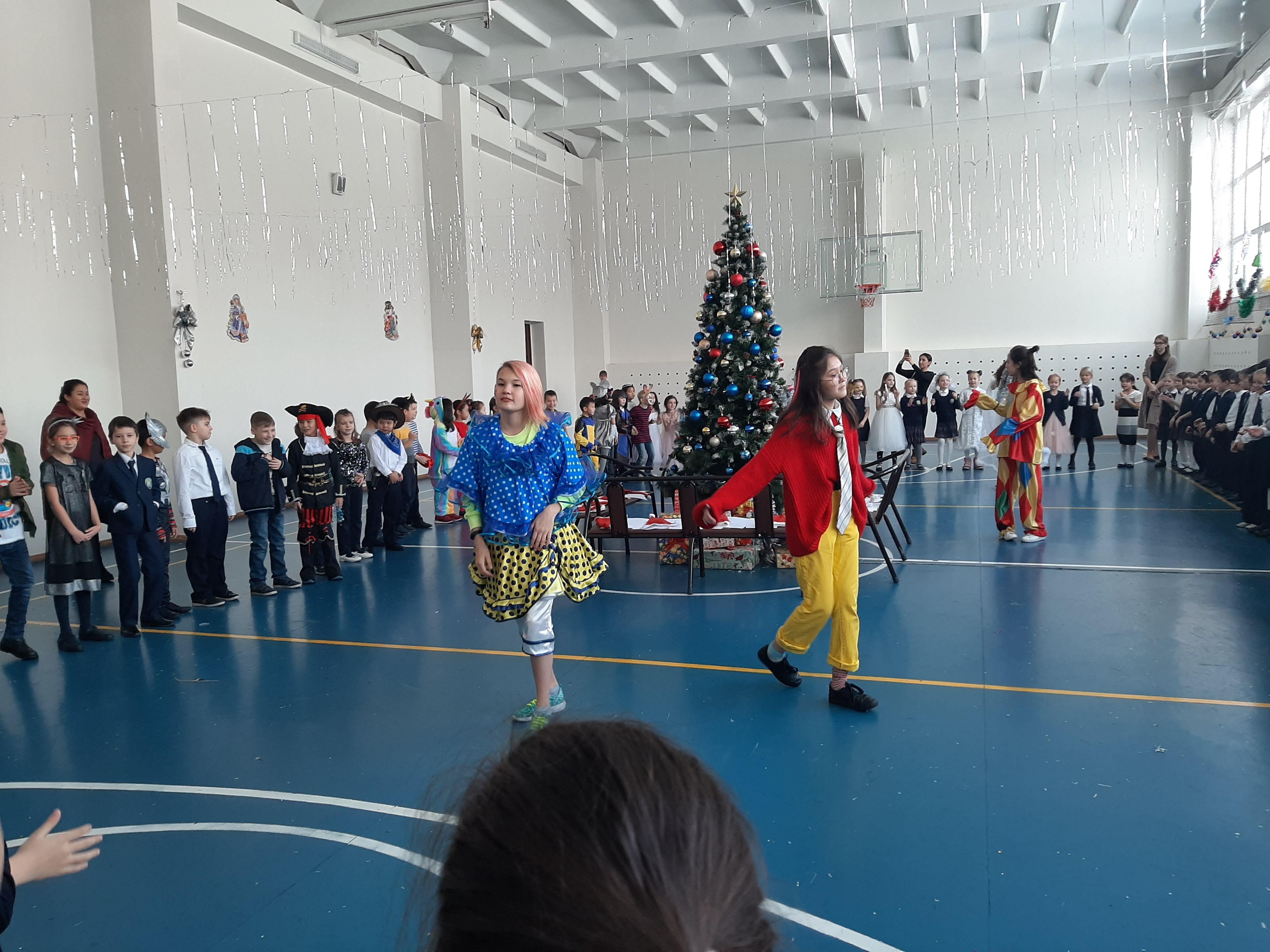 23 декабря 2019 годапрошла новогодняя елка для учащихся 1-4-ых классов,которая подготовлена силами учащихся 8 «а» класса, классный руководитель Мырзагалиева Г.Ш. оказала помощь в подготовке председатель Попечительского Совета Кунаева С.Состоялось театрализованное представление с участием новогодних персонажей Деда Мороза, Снегурочки, Баба Яга, Кот, Клоуны, Снежинки. Учащиеся добросовестно подготовились, зал был оформлен новогодними украшениями и была красочно оформлена елка. Дети с удовольствием наблюдали за происходящим, бурно и активно участвовали в играх, водили хоровод вокруг елки.Мероприятие закончилось в 14.00 ч.