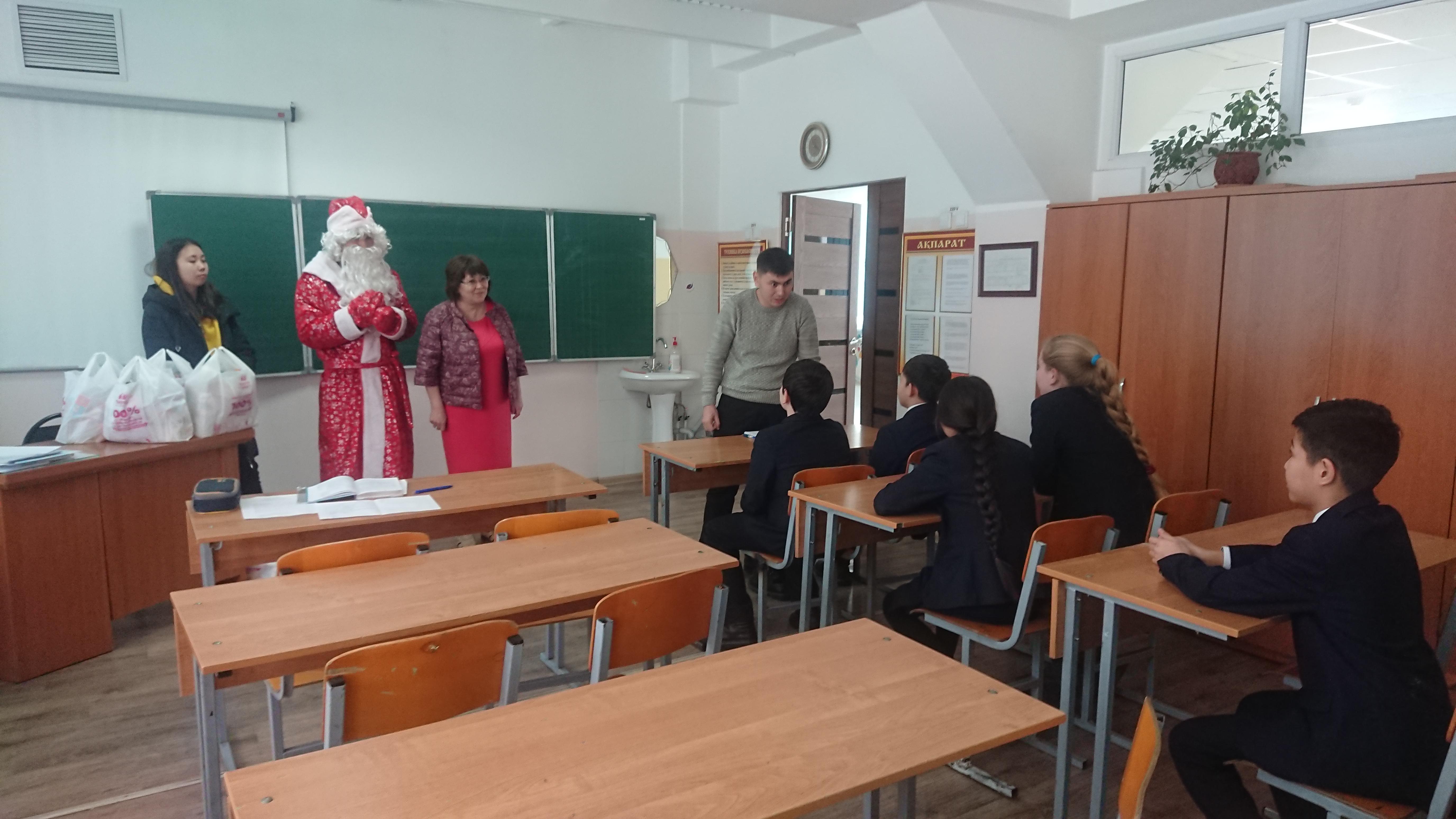 Фонд «Ардагер» от имени супермаркета «Магнум» вручил новогодние подарки для детей из малообеспеченных семей. Мухаметкарим Б 6 «б», Тангиев И. 6 «в», Марунич А., Жураева С. 7 «г».