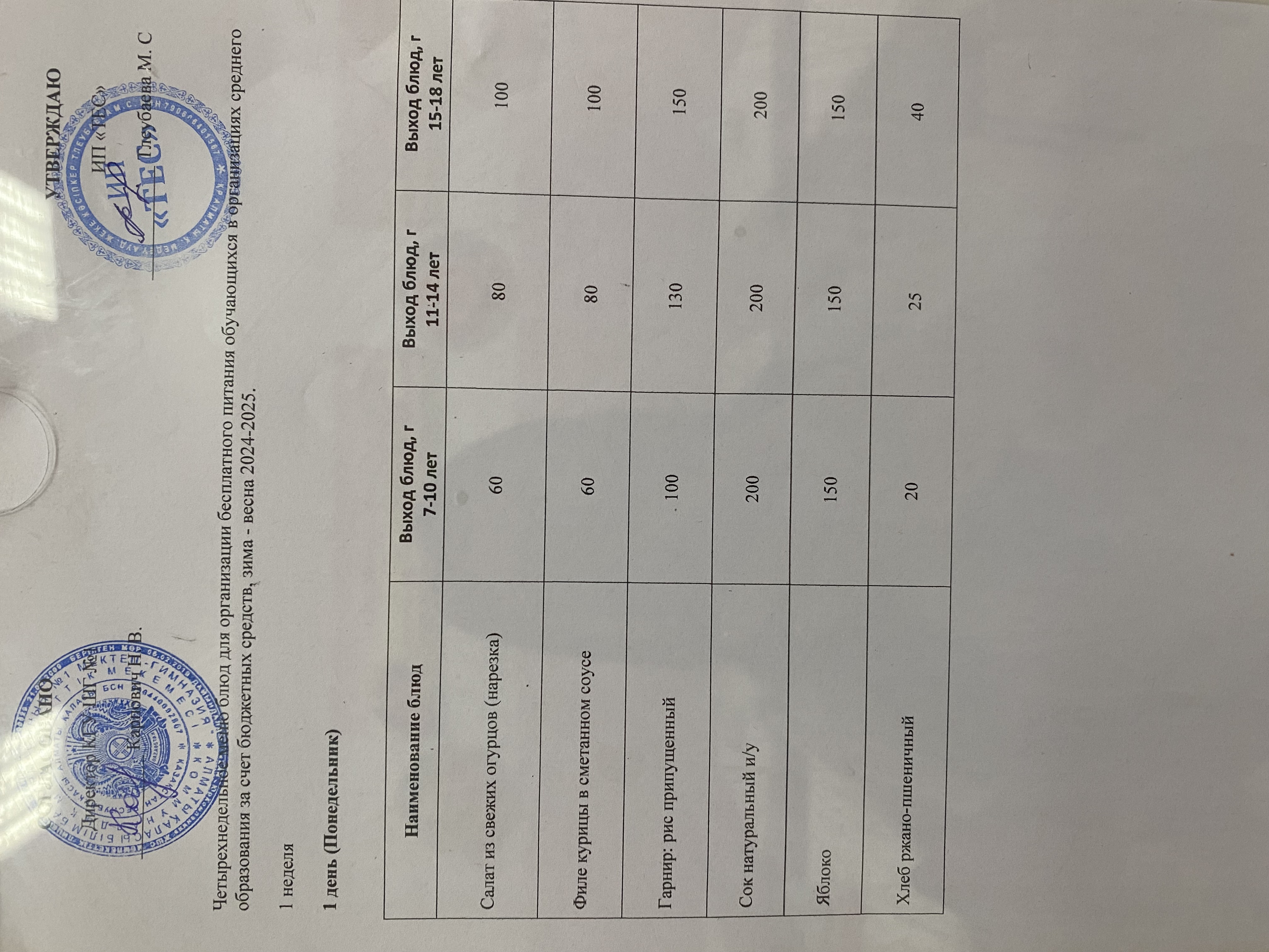 АС МӘЗІРІ 1 АПТА 1 КҮН/ МЕНЮ 1 НЕДЕЛЯ 1 ДЕНЬ