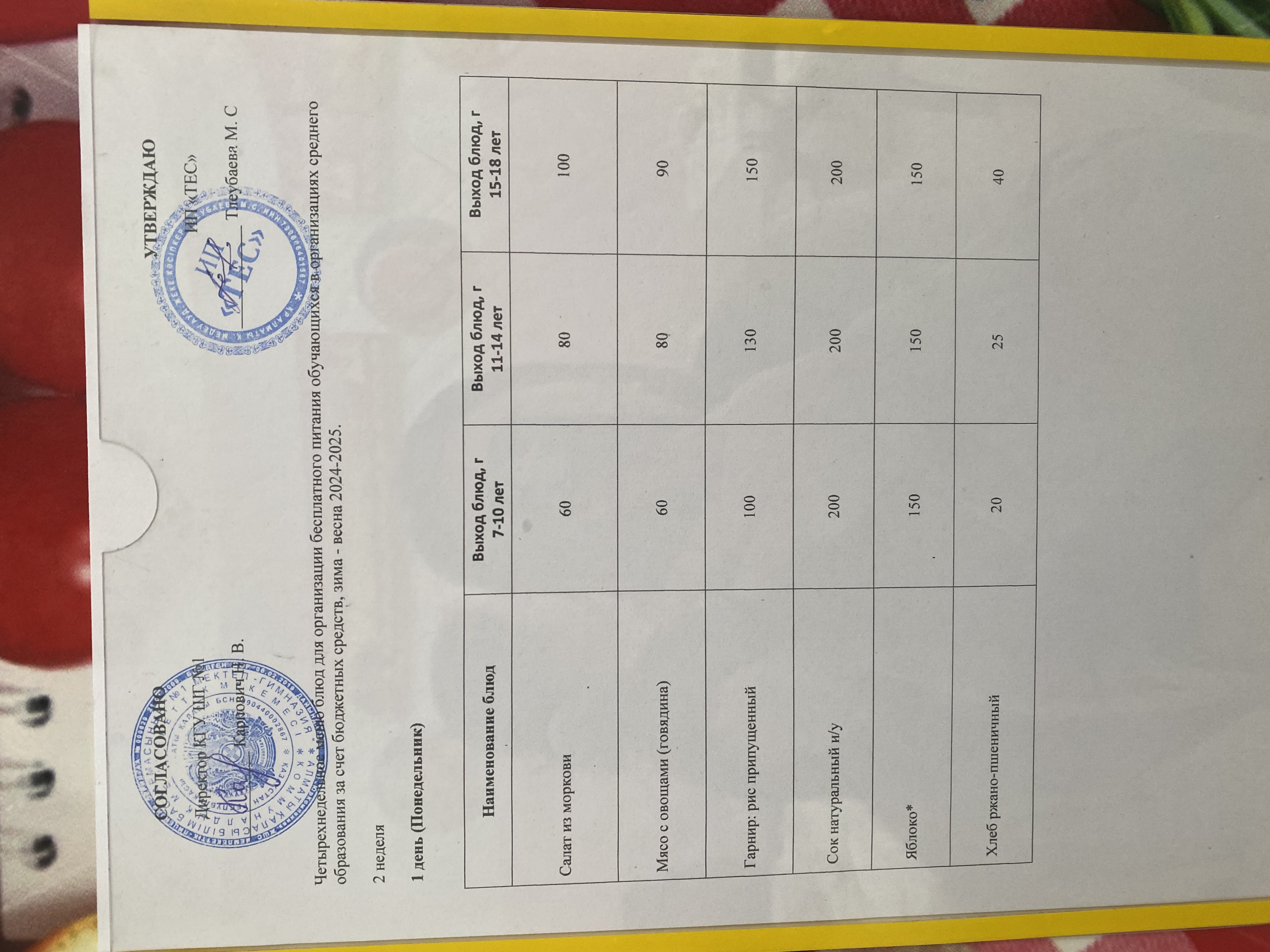 09 желтоқсан 2024 0 1 2 3 4 5 АС МӘЗІРІ 2 АПТА 1 КҮН/ МЕНЮ 2 НЕДЕЛЯ 1 ДЕНЬ Осы беттің QR-коды:QR-код этой страницы: