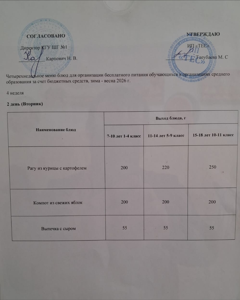 27 қаңтар 2026 0 1 2 3 4 5 АС МӘЗІРІ 4 АПТА 2 КҮН / МЕНЮ 4 НЕДЕЛЯ 2 ДЕНЬ Осы беттің QR-коды:QR-код этой страницы: